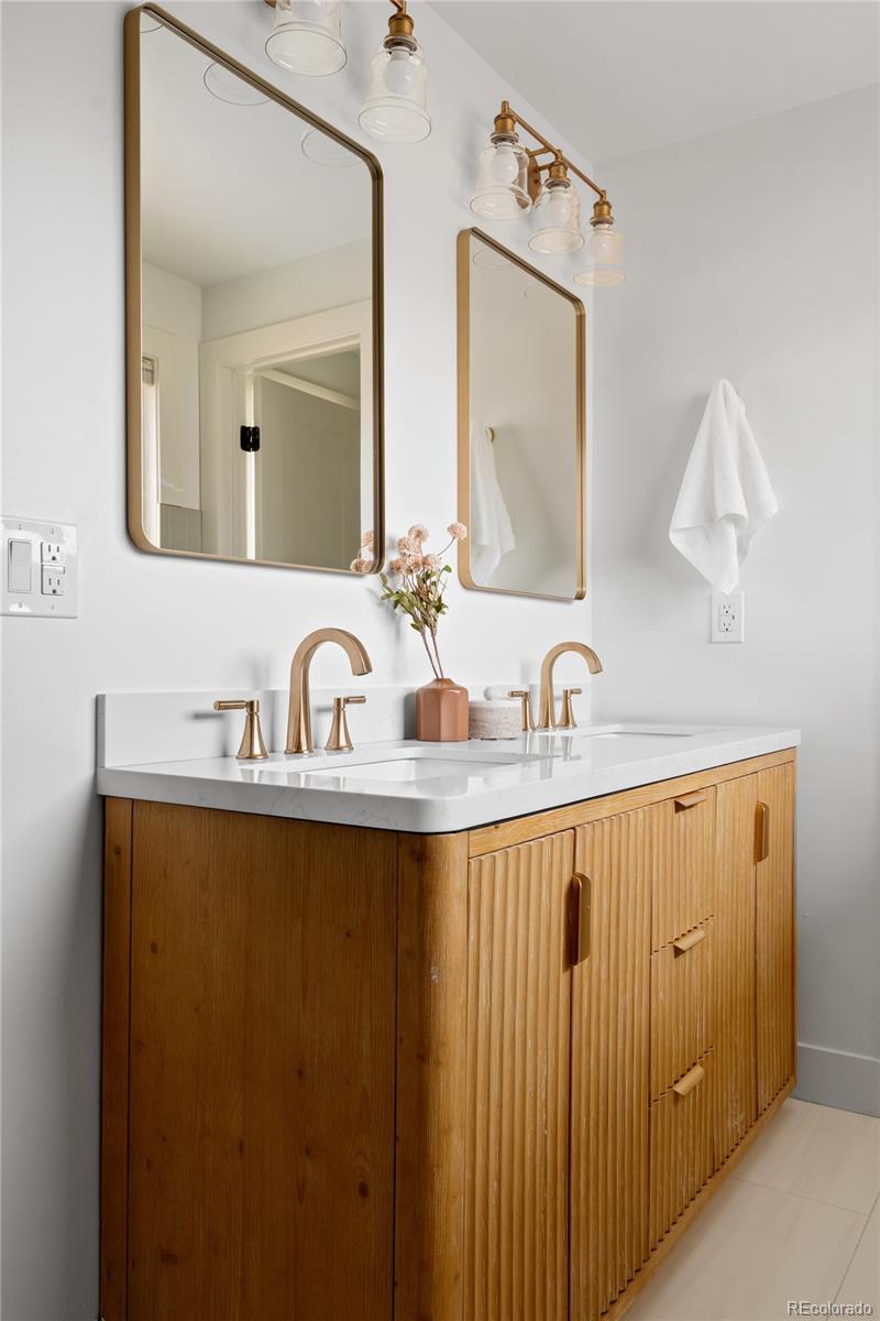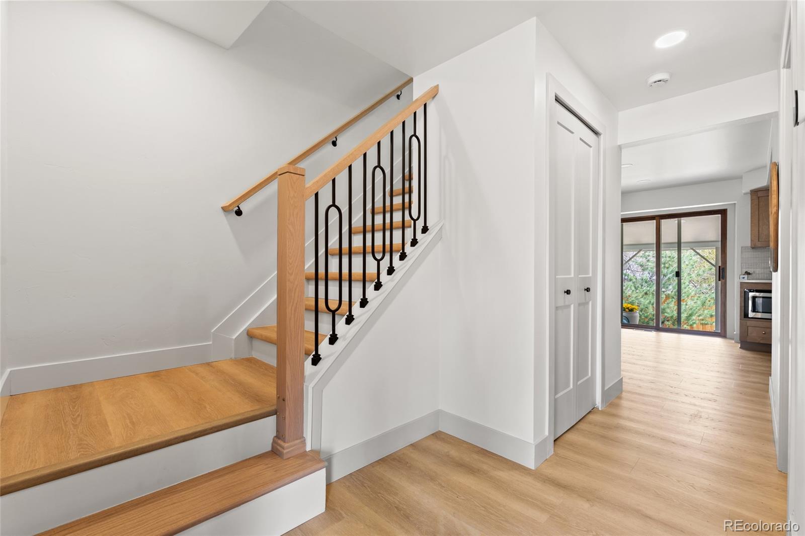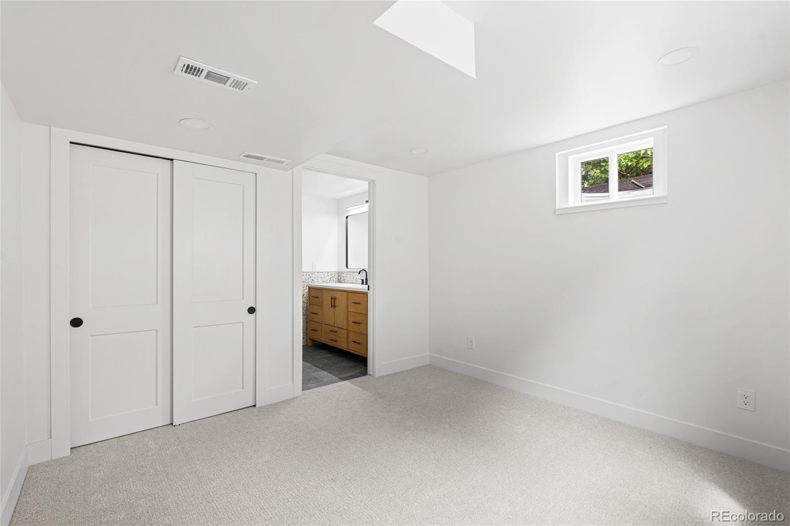 Experience warm elegance and modern comfort at this beautifully reimagined Southmoor residence. This west-facing home has been completely remodeled with high-end finishes and practical updates- new class 4 roof, new water heater, new AC compressor, all new appliances and gorgeous touches throughout. Step inside through the charming original double doors. The main level is light-filled and open, perfect for relaxing and entertaining. Durable wide plank laminate flooring, built-in arches and elegant lighting give this home a truly custom feel. The kitchen has been stylishly redesigned with warm oak cabinetry, quartz counters, champagne bronze hardware, fluted zellige tile and a luxurious pot-filler. Waterfall quartz counters and accent cabinets add style and functionality. The sunken living room with built-in shelving and a gas log fireplace is a cozy spot to gather with friends and family. Upstairs, you'll find three bedrooms and two bathrooms. The primary retreat is stunning, featuring a solid core chevron sliding door, spa-like shower with delta champagne bronze plumbing fixtures, dual sinks and his and hers walk-in closets. Two more generously sized bedrooms and another full bathroom with stylish updates round out the upper level. The spacious basement has tons of light and makes an excellent flex space for whatever fits your lifestyle-- rec room, home office, media room or all of the above! A fourth conforming bedroom and spacious bathroom create an excellent retreat for guests. The outside is just as lovely with a large covered patio just off the kitchen, perfect for al fresco entertaining. This home is ideally located just north of the tech center and Greenwood Village and has easy access to both I-25 and 225 for ease getting around town. Walkable to beautiful Rosamond Park and tons of convenient shopping along Hampden. Don't miss this opportunity to live this beautifully reimagined home in one of Denver's most coveted neighborhoods!